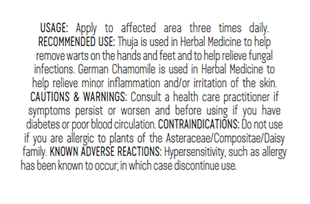 Ingrédients: Thuja Occidentalis (3:1) 6%, Matricaria Chamomilla (2:1) 4%,