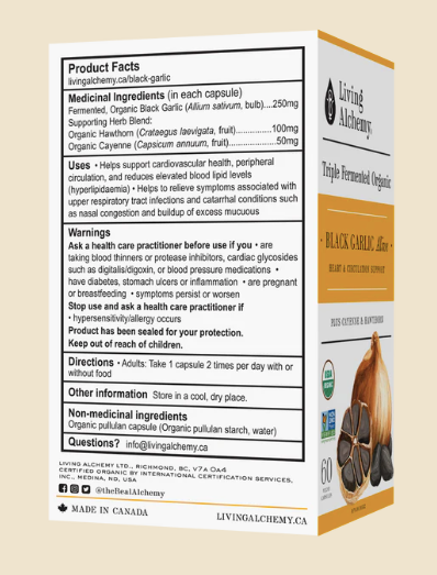 Ingrédients médicinaux: Ail noir biologique fermenté Symbio® (100mg)