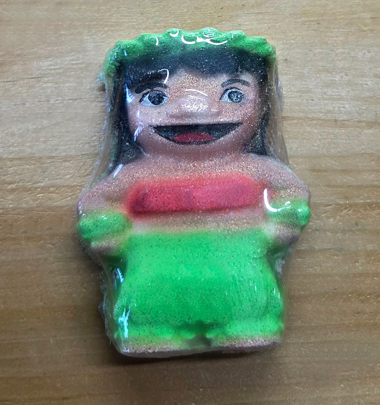 Ingrédients: Sodium bicarbonate, citric acid, milk powder, sodium lauryl sulfoacetate, helianthus annuus oil (huile de tournesol), kaolin (argile), fragrance, polysorbate 80, mica, lake, dyes.