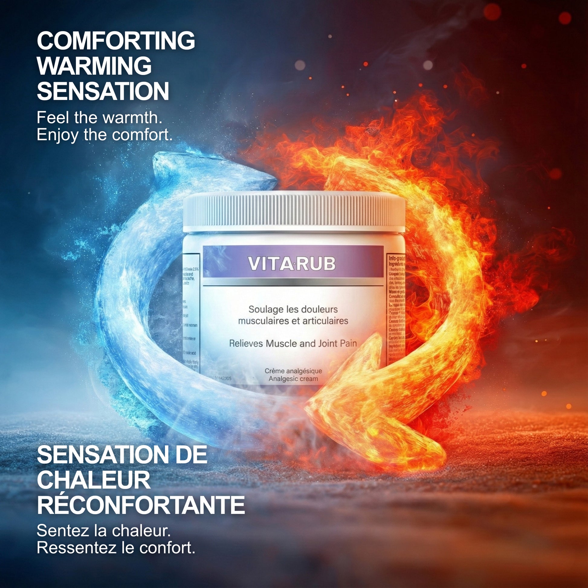 Que ce soit après une séance de sport, une journée de jardinage ou simplement pour détendre votre corps, l'application par massage de Vita Rub procure une chaleur douce qui aide à délier les tensions.