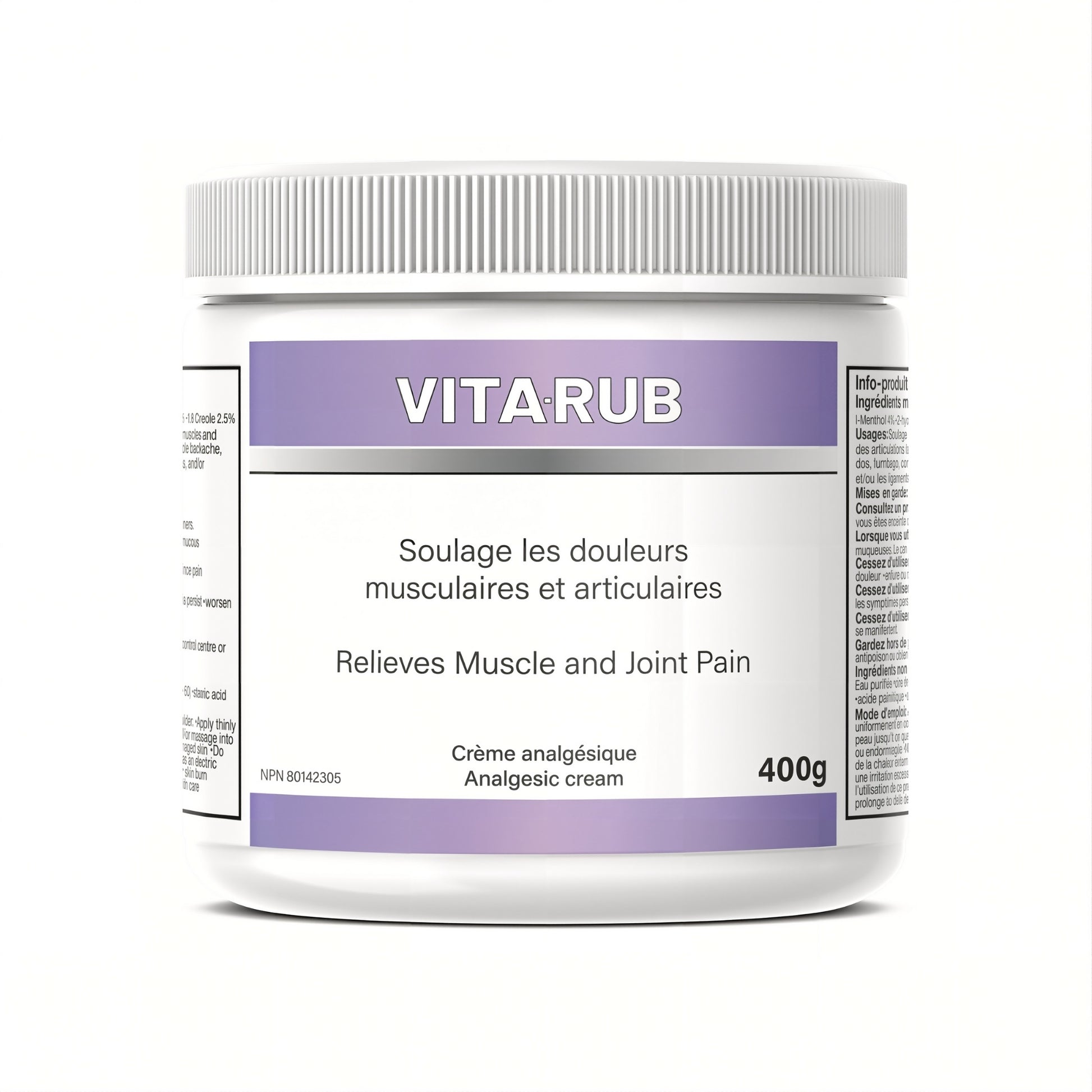 Vita Rub – Crème de Massage Apaisante – Muscles et Articulations – Formule Naturelle au Menthol et Eucalyptus – Effet Chauffant – 400g