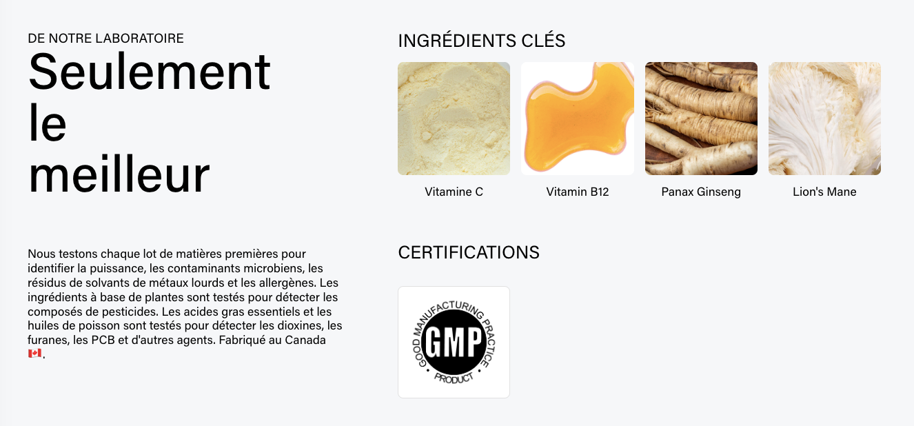Nous vous invitons à consulter un médecin afin d’avoir un avis professionnel avant d’utiliser ce produit. Les résultats peuvent varier selon chaque individu et nous ne pouvons en garantir les effets. Les résultats ou affirmations mentionnées sont à titre indicatif seulement. Ce produit ne guérit pas la maladie et ne peut en aucun temps remplacer une prescription médicale sans l’approbation d’un médecin ou d’un pharmacien compétent. Si vous prenez déjà des médicaments, avez une condition de santé particulière, êtes enceinte ou présentez toute autre condition médicale, veuillez consulter un professionnel de la santé avant d’utiliser ce produit.