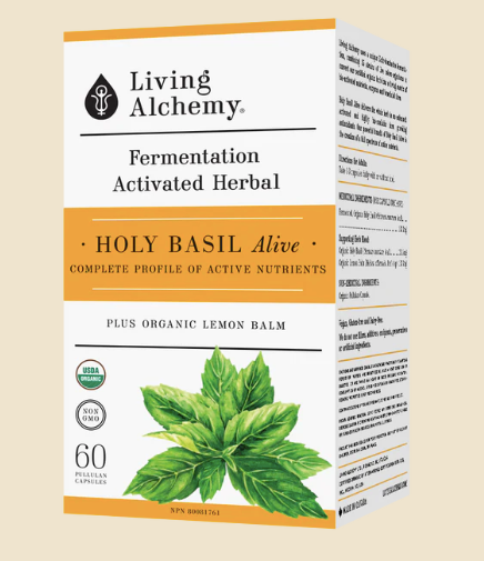 Living Alchemy emploie l’art ancien de la fermentation pour activer le basilic sacré dans sa forme supérieure. Ils fermentent leur meilleurs basilic biologique durant un mois. Celle-ci contient 35 souches de microorganismes provenant des cultures de kéfir et de kombucha. Cette activation procure une synergie complète de la plante contenant une matrice nutritive pour une vitalité et une bioactivité exceptionnelle.