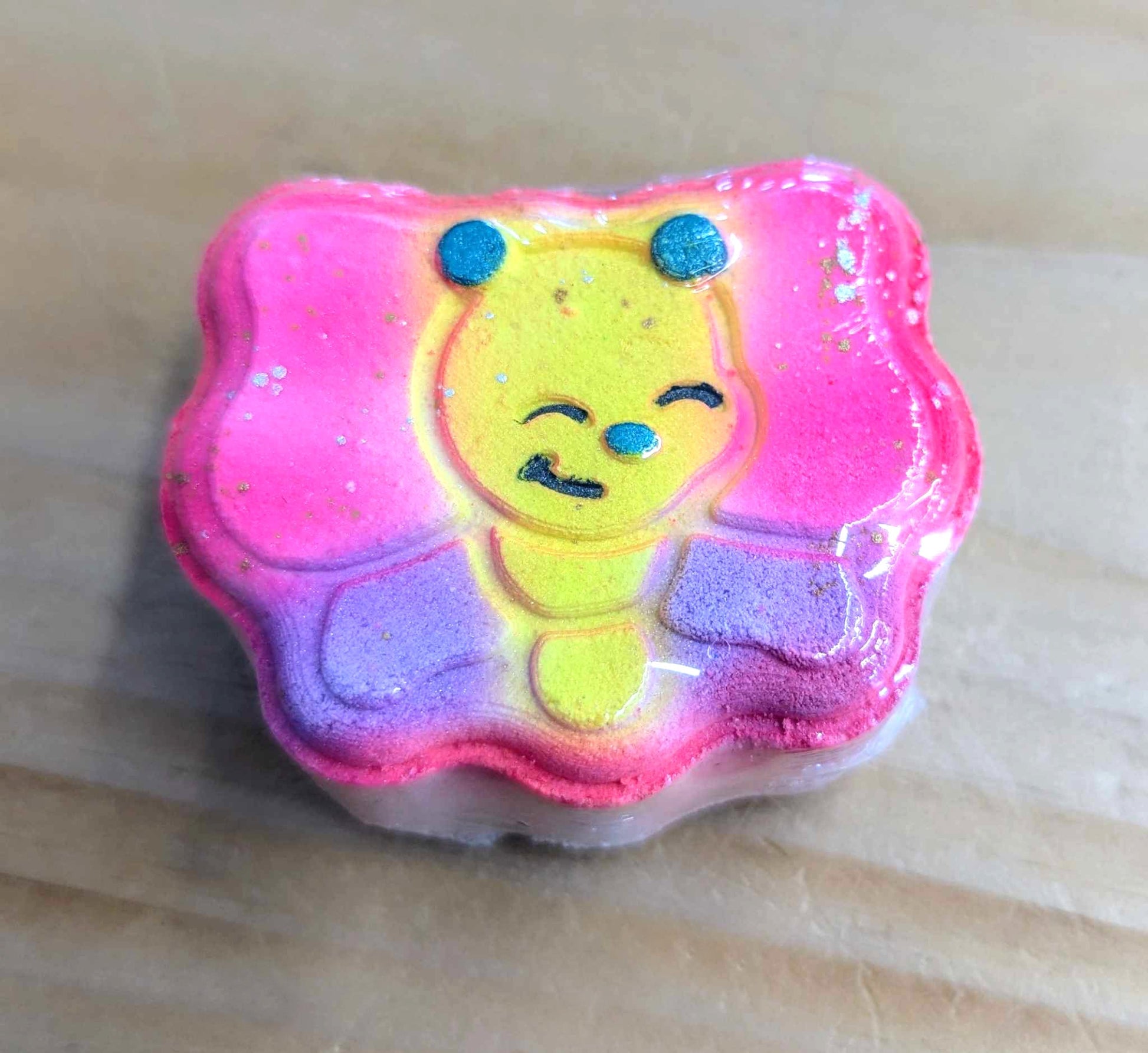 Ingrédients : Bicarbonate de soude, acide citrique, lait en poudre, laurylsulfoacétate de sodium, huile de graines d'anuus helianthus, argile kaolin, huile de parfum, polysorbate 80, mica, laque, colorants. (avec insertions de couleurs)