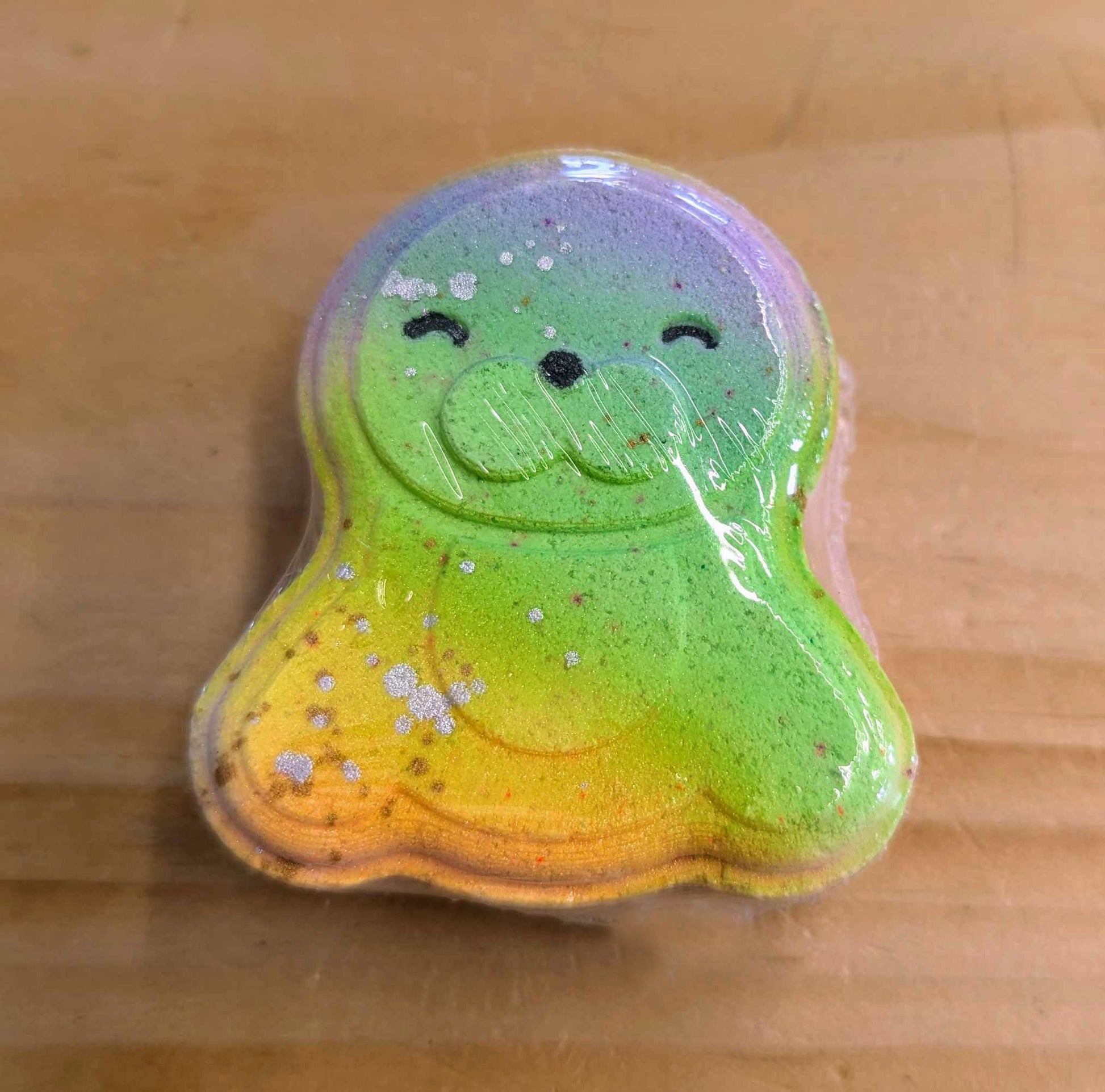 Ingrédients : Bicarbonate de soude, acide citrique, lait en poudre, laurylsulfoacétate de sodium, huile de graines d'anuus helianthus, argile kaolin, huile de parfum, polysorbate 80, mica, laque, colorants. (avec insertions de couleurs)