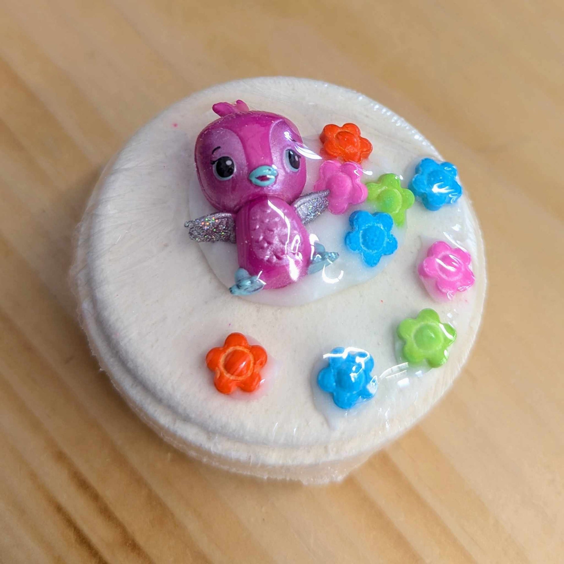Ingrédients: Bicarbonate de soude, acide citrique, milk powder, sodium lauryl sulfoacetate, anuus helianthus seed oil, argile kaolin, huile de fragrance, polysorbate 80, mica, lake, dyes. (avec insertions de couleurs)