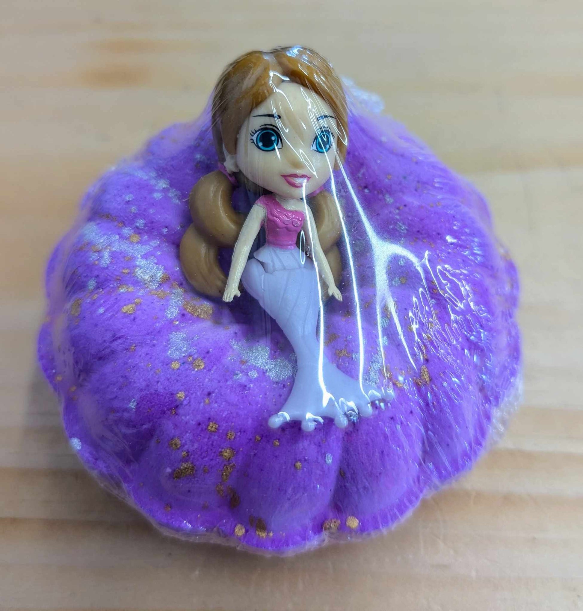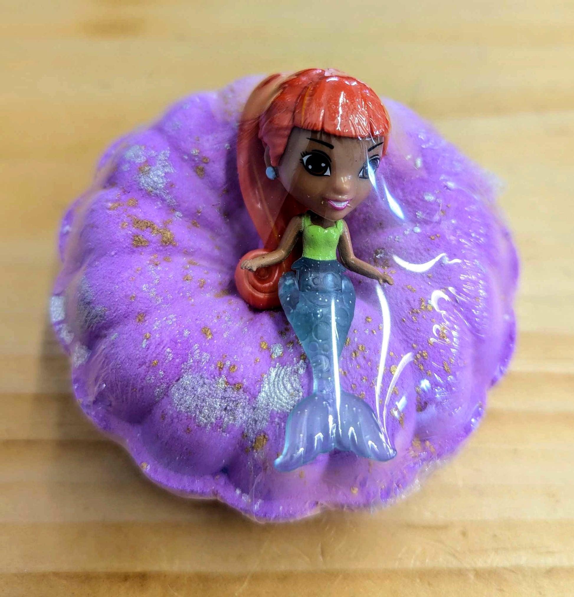 Bombe de bain effervescente avec insertions de couleurs et jouet sirène.