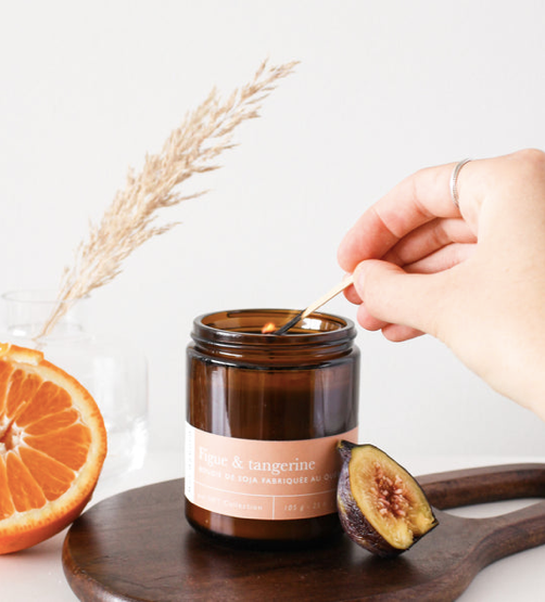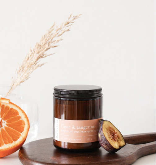 Bougie fabriquée à la main au Québec à partir de cire de soya 100% naturelle.
