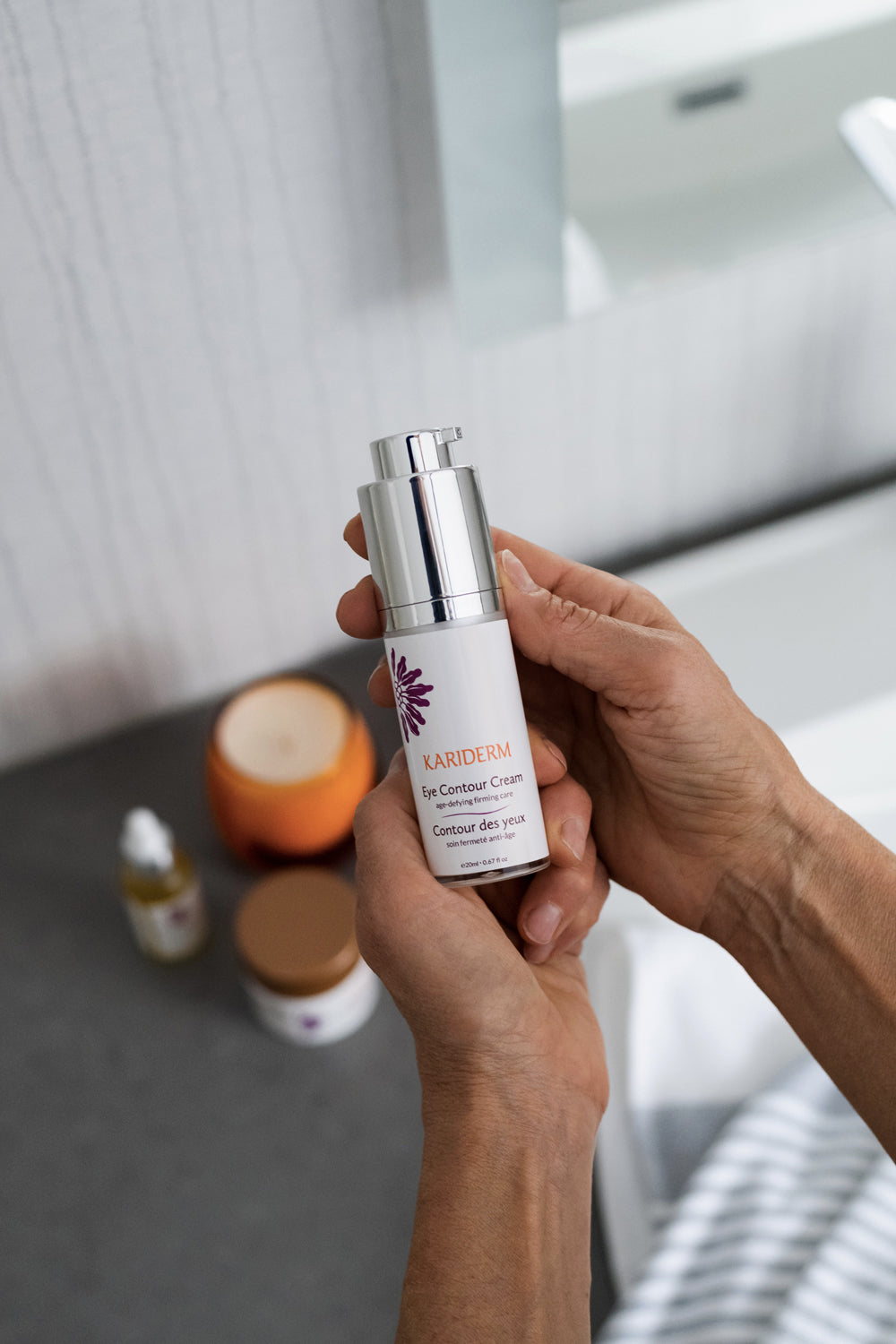 Appliquer en fine couche matin et soir en évitant tout contact avec l’œil. Travailler par petites doses en appliquant un peu de crème sur votre index et en tapotant délicatement le contour de l’oeil. S’utilise de préférence juste après la Lotion tonique KARIDERM.