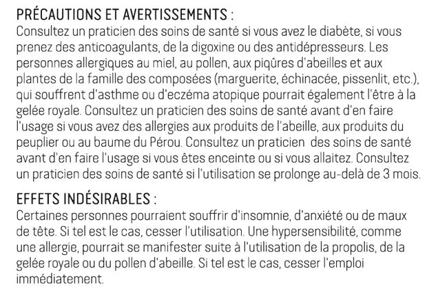 Gelée royale (Apis Mellifera) 3:1, 83,3 mg équivalent à..........250 mg