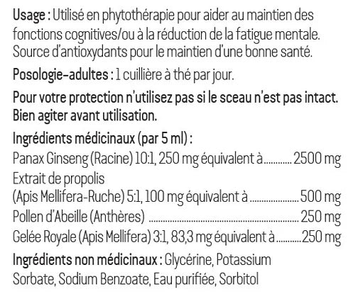 Panax Ginseng (racine) 10:1, 250 mg équivalent à ............ 2500 mg