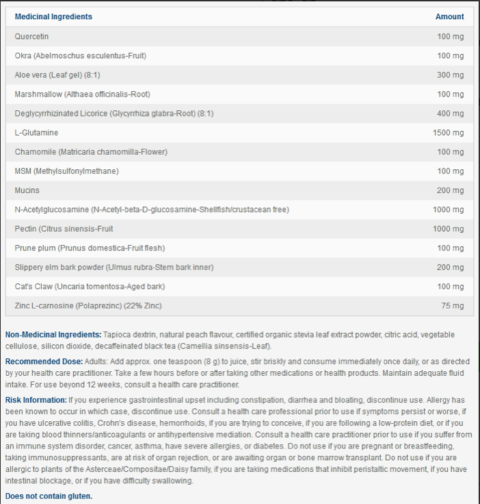 Avec les taux les plus élevés d’ulcères gastro-intestinaux et de maladies inflammatoires de l’intestin dans le monde, les maladies digestives coûtent à la population plus de 18 milliards de dollars canadiens par année depuis l’an 2000. GI-Revive offre un support complet pour une santé et un fonctionnement gastro-intestinal optimal. Il fournit des niveaux thérapeutiques de nutriments qui soutiennent la réparation de la muqueuse gastro-intestinale et aide à contrer l’inflammation tout en favorisant la régularité intestinale.