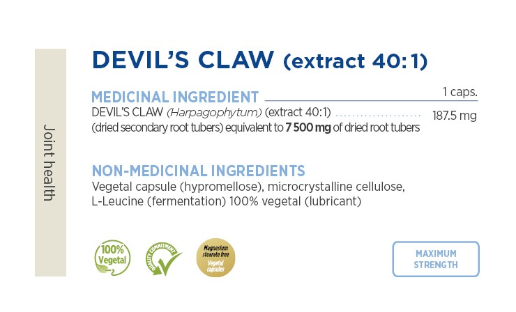 GRIFFE DU DIABLE (Harpagophytum) (extrait 40 :1)..... 187,5 mg (racine secondaire tubérisée) équivalent à 7 500 mg de racines séchées