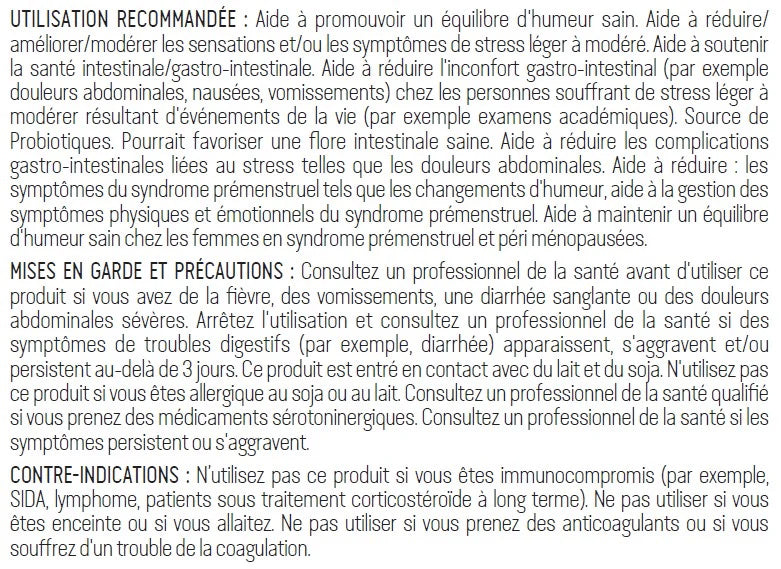- Aide à soutenir un équilibre de l’humeur sain chez les femmes prémenstruelles et périménopausées.
