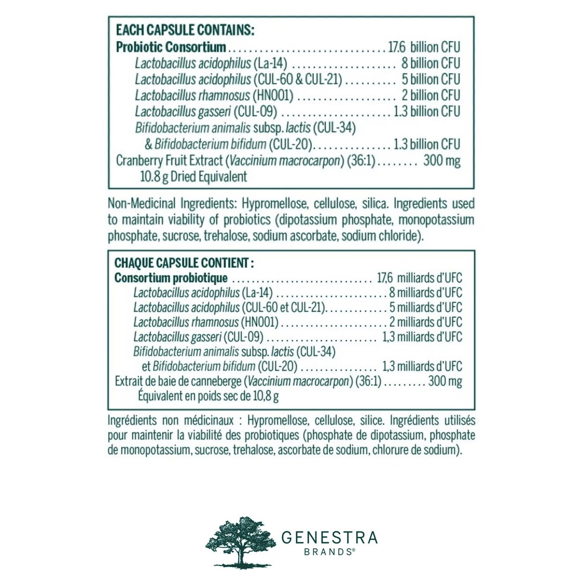 • Fournit 17,6 milliards d'UFC par capsule, plus 300 mg d'extrait de fruit de canneberge