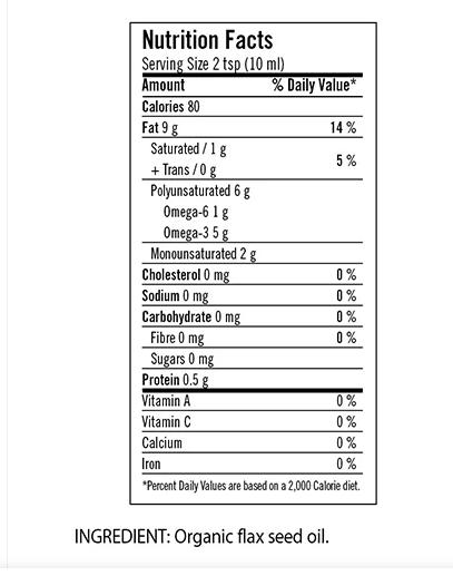 Ingrédients: Huile de lin canadienne certifiée biologique