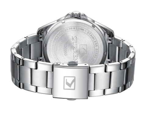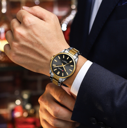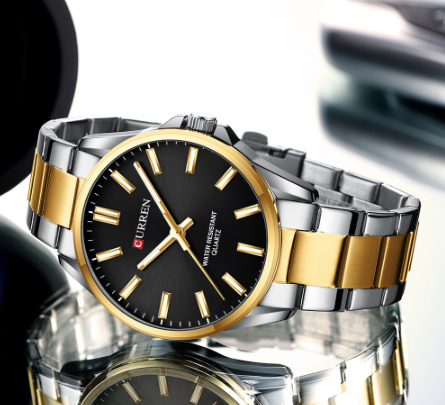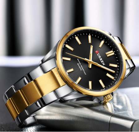 Montre Curren en métal deux tons or et argent, fond noir, pour hommes.