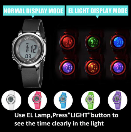 Fonctions: Chrono, Alarme, Lumière, Heure, date.
