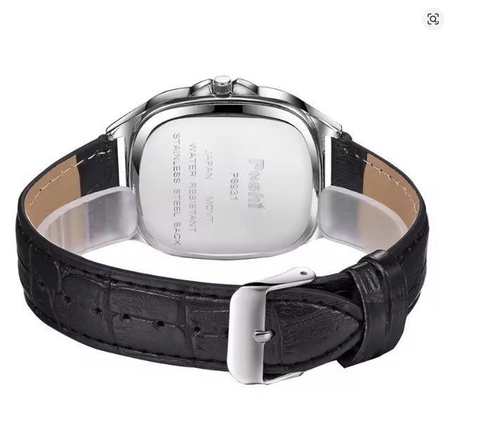 Montre pour hommes carrée avec bracelet de cuir noir