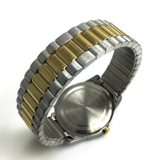 Bracelet extensible en acier inoxydable deux tons or et argent.