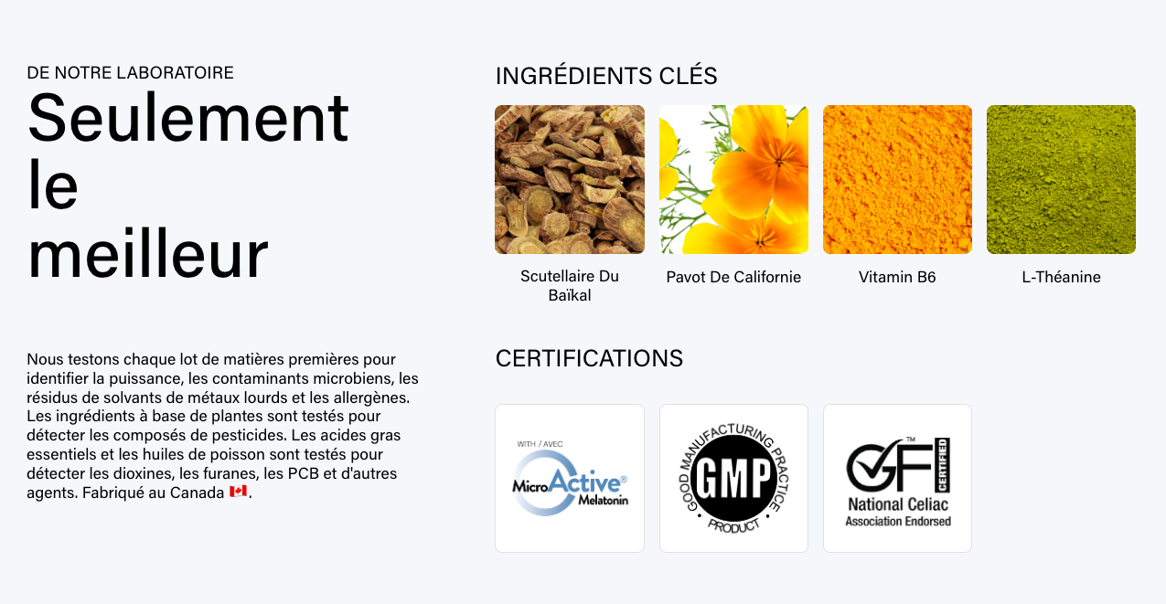 Nous vous invitons à consulter un médecin afin d’avoir un avis professionnel avant d’utiliser ce produit. Les résultats peuvent varier selon chaque individu et nous ne pouvons en garantir les effets. Les résultats ou affirmations mentionnées sont à titre indicatif seulement. Ce produit ne guérit pas la maladie et ne peut en aucun temps remplacer une prescription médicale sans l’approbation d’un médecin ou d’un pharmacien compétent. Si vous prenez déjà des médicaments, avez une condition de santé particulière, êtes enceinte ou présentez toute autre condition médicale, veuillez consulter un professionnel de la santé avant d’utiliser ce produit.