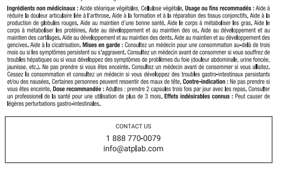 Nous vous invitons à consulter un médecin afin d’avoir un avis professionnel avant d’utiliser ce produit. Les résultats peuvent varier selon chaque individu et nous ne pouvons en garantir les effets. Les résultats ou affirmations mentionnées sont à titre indicatif seulement. Ce produit ne guérit pas la maladie et ne peut en aucun temps remplacer une prescription médicale sans l’approbation d’un médecin ou d’un pharmacien compétent. Si vous prenez déjà des médicaments, avez une condition de santé particulière, êtes enceinte ou présentez toute autre condition médicale, veuillez consulter un professionnel de la santé avant d’utiliser ce produit.