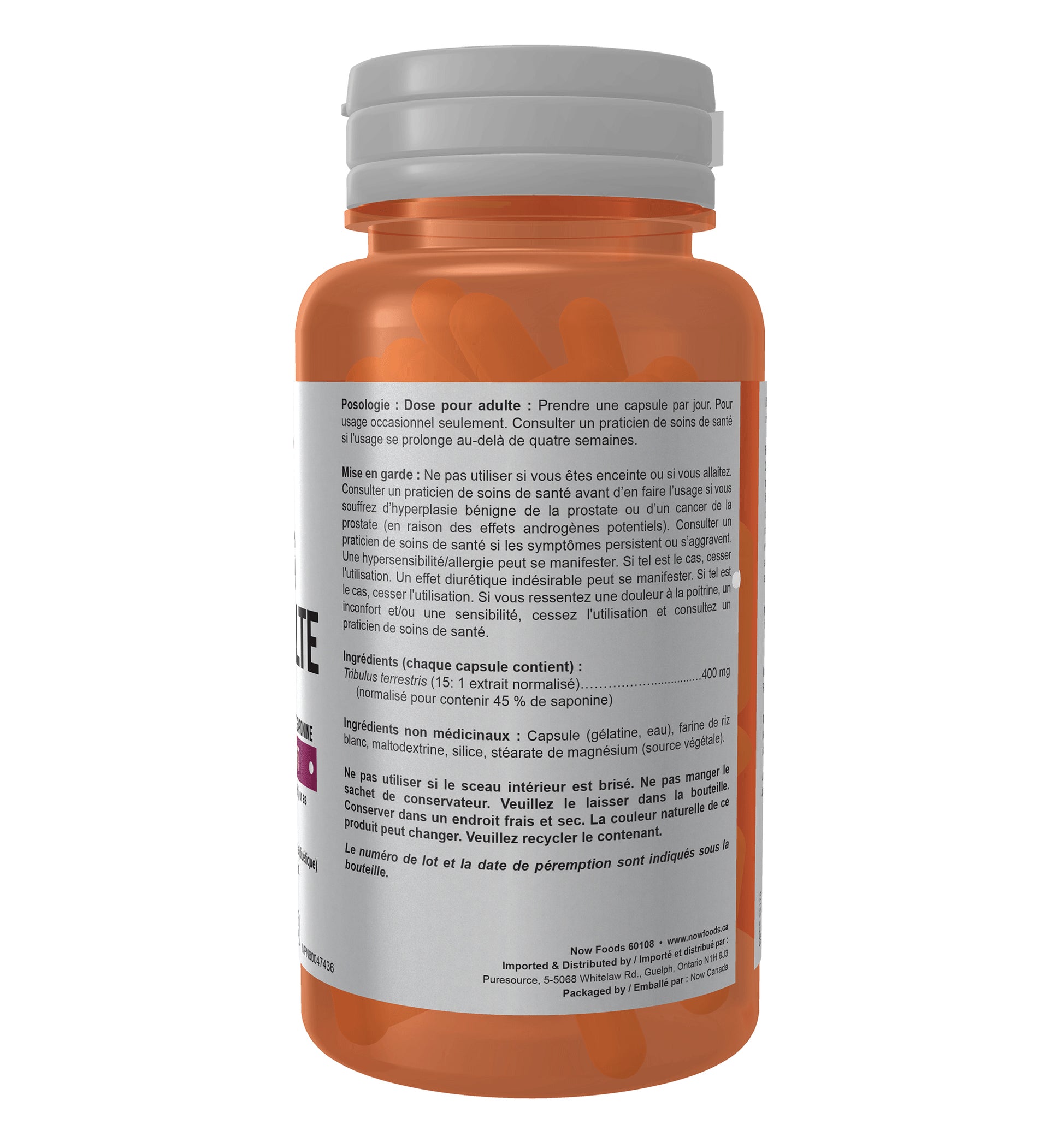 Le Tribulus terrestris est utilisé depuis des siècles dans la Grèce antique, en Inde et en Afrique pour améliorer la vitalité et la virilité. Des recherches récentes indiquent que le Tribulus peut renforcer les systèmes de défense de l'organisme contre les radicaux libres, et des études préliminaires suggèrent que le Tribulus pourrait contribuer au bon fonctionnement du système endocrinien et à la santé reproductive masculine. La protodioscine est un agent phytochimique dérivé du Tribulus terrestris L., dont l'efficacité cliniquement prouvée améliore le désir sexuel et l'érection grâce à sa conversion en DHEA (déhydro-épi-androstérone). Les gélules NOW® Tribulus 400 mg sont standardisées pour contenir au moins 45 % de saponines afin d'obtenir des résultats constants et fiables.