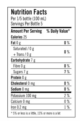 Ingrédients: Préparation à base de plantes (eau, gingembre*, bardane*, petite oseille*, orme rouge*, trèfle rouge*, chardon béni*, rhubarbe*, varech*), Vinaigre de cidre*, Sucres (jus de pomme concentré*), Arôme naturel de citron .