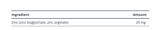| Zinc (bisglycinate de zinc, arginate de zinc) | 20 mg |